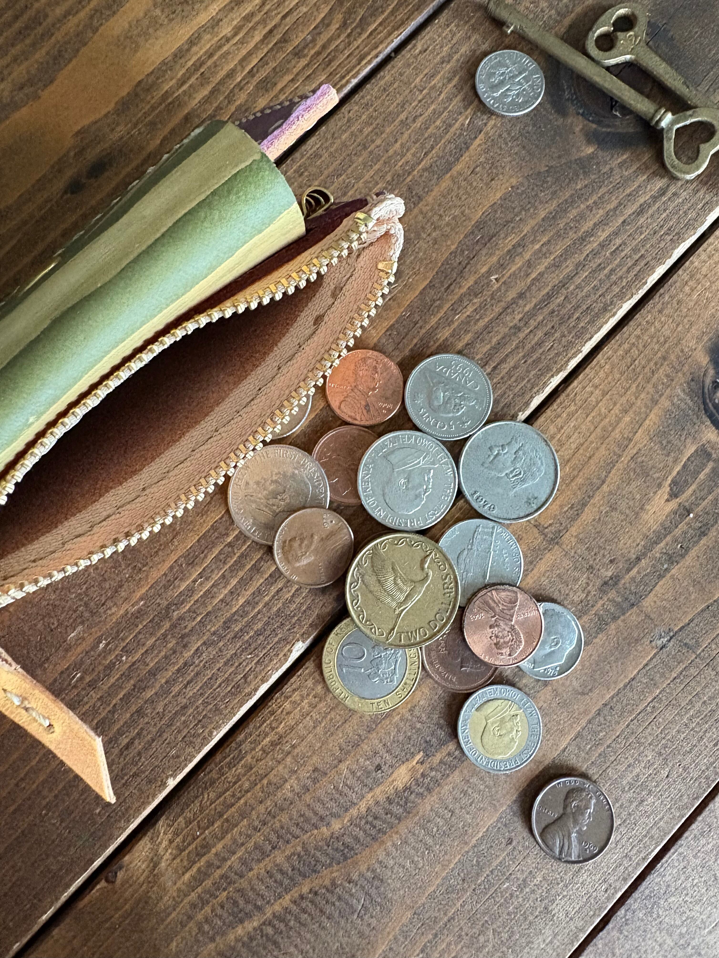 小さなサイズ感ながらも、お札やカード、コインを収納できるお財布機能も付いてるので、これ一つで便利に持ち歩けます。